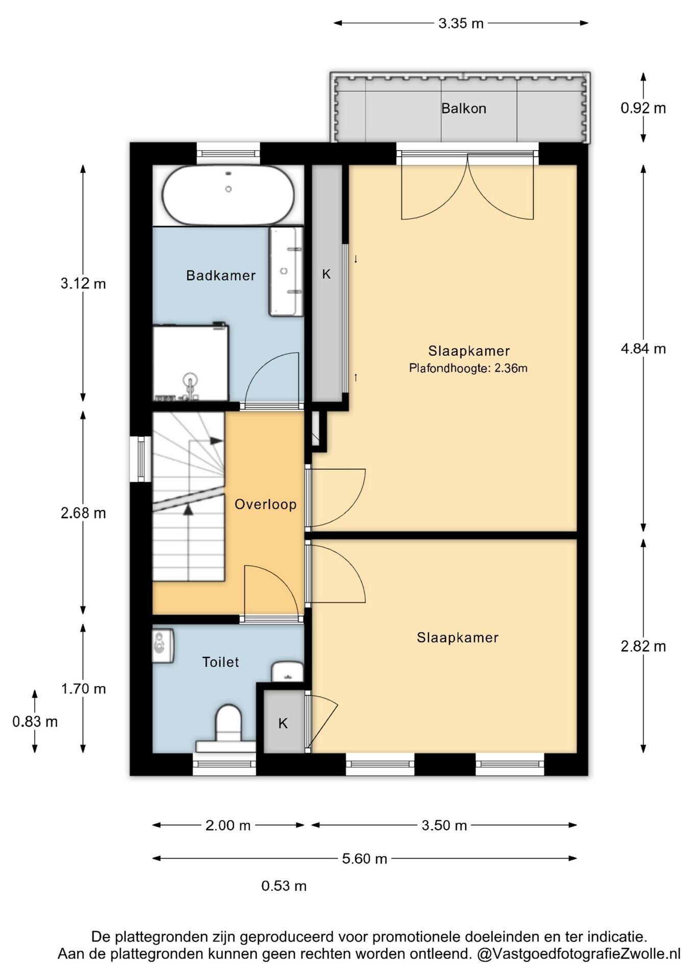 - 36 m² (6,00 meter diep en 6,00 meter breed)